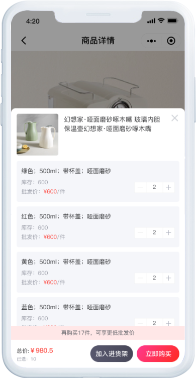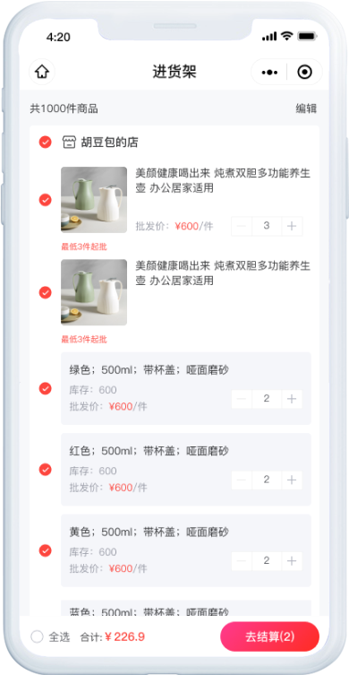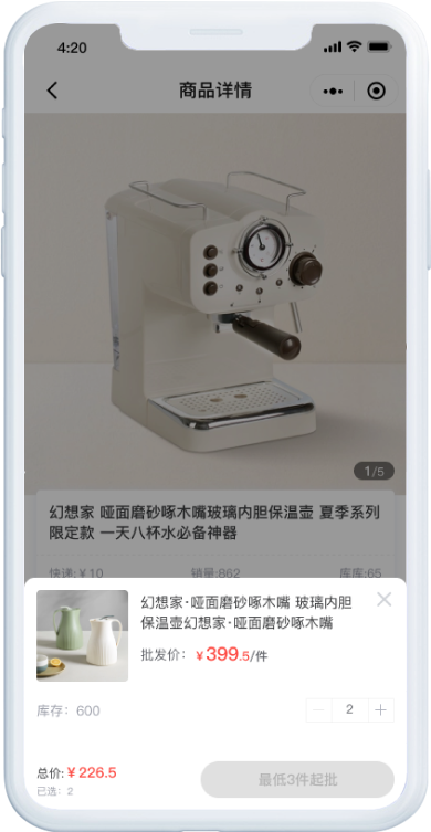 支持不同商品设置不同的起批数量,达到设置的起批数量才能够下单购买。