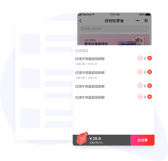快速购买购物车和商城购物车数据同步,无需跳转一键购买。