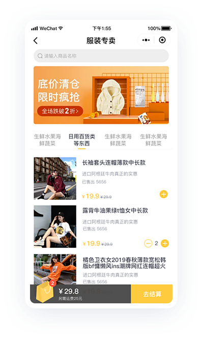 虚拟商品、电子卡密、秒杀等商品可实现一键加购。